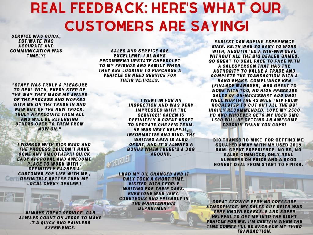 Why Choose Upstate Chevrolet? As your trusted local Chevrolet dealer, we're committed to providing exceptional service, competitive pricing, and ongoing support throughout your ownership experience. Our team is here to make your car-buying journey smooth and satisfying.