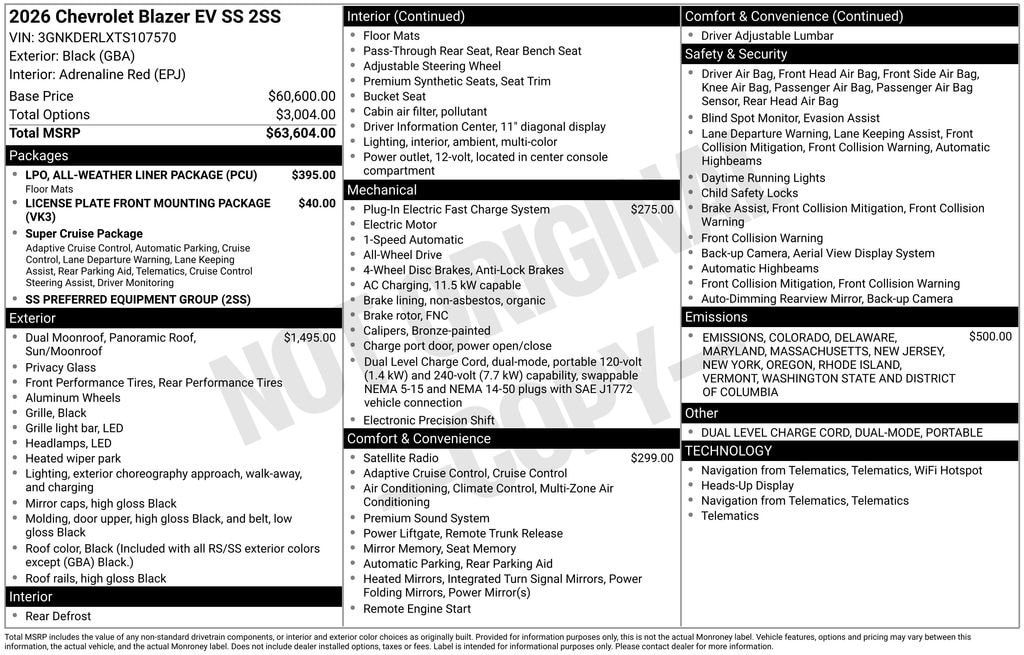 Experience the Future with the 2026 Chevrolet Blazer EV SS! This all-electric SUV combines cutting-edge technology with impressive performance. The AWD system delivers confident handling in any weather, while the spacious interior features ventilated and heated seats for ultimate comfort.