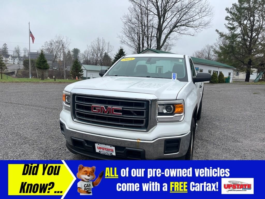 3 EASY WAYS TO BUY FROM UPSTATE CHEVROLET! **CALL US AT (585) 591-2300 **, **VISIT US ONLINE AT WWW.CHEVYOFATTICA.COM**, **TEXT US 24/7/365 @ (585) 765-4030** Odometer is 22969 miles below market average! 6-Speed Automatic Electronic with Overdrive, Jet Black/Dark Ash Cloth. Clean CARFAX. 2015 GMC Sierra 1500 2D Standard Cab RWD 6-Speed Automatic Electronic with Overdrive EcoTec3 5.3L V8 Summit WhiteAwards:* 2015 KBB.com Brand Image AwardsReviews:* Powerful and fuel-efficient engines; many available configurations; well-built, comfortable interior; quiet highway ride. Source: Edmunds* If you need a half-ton pickup with the most horsepower and a class-leading 12,000-pound trailer rating, the 2015 GMC Sierra full-size pickup has you covered. Bigger-than-life styling is augmented by a plush interior and a host of cutting-edge safety and communication features. Source: KBB.com