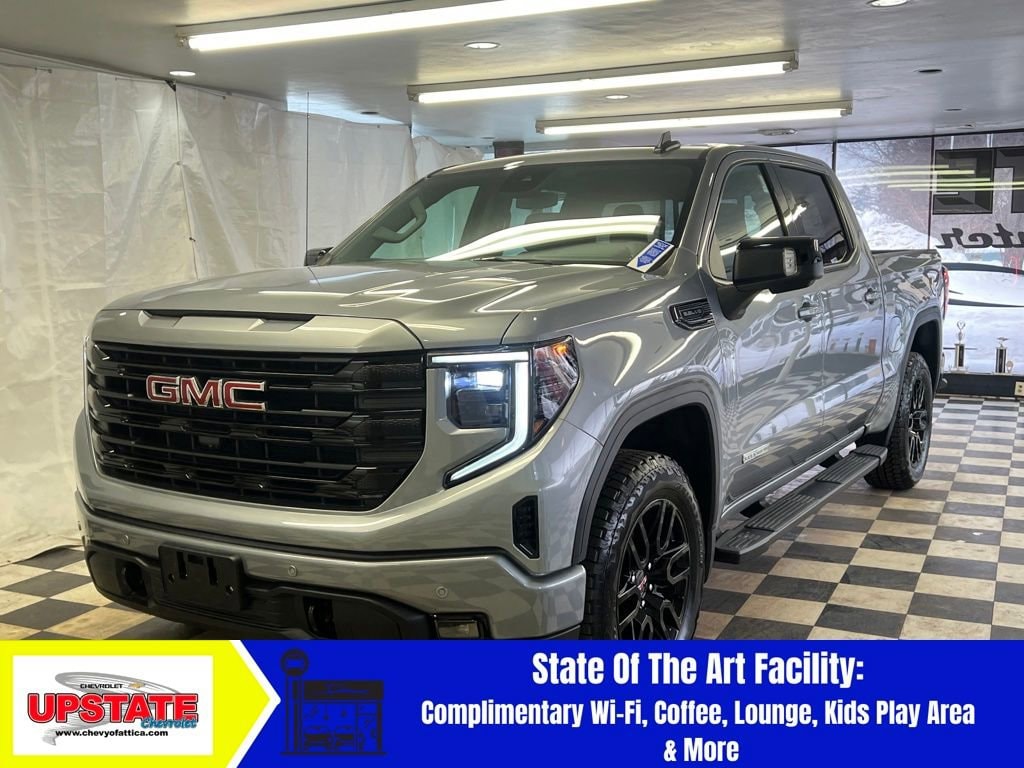 3 EASY WAYS TO BUY FROM UPSTATE CHEVROLET! **CALL US AT (585) 591-2300 **, **VISIT US ONLINE AT WWW.CHEVYOFATTICA.COM**, **TEXT US 24/7/365 @ (585) 765-4030** Odometer is 2196 miles below market average! Non-Smoker, UNDER 1K MILES, 10-Speed Automatic, 4WD, Black Leather, Adaptive Cruise Control, Dual Exhaust System, Heavy-Duty Air Filter, Hill Descent Control, Hitch Guidance, Off-Road Suspension, Rear Wheelhouse Liners, Remote Vehicle Starter System, Trailering Package, X31 Hard Badge, X31 Off-Road Package. Clean CARFAX. 2026 GMC Sierra 1500 Elevation 4D Crew Cab 4WD 10-Speed Automatic EcoTec3 5.3L V8 Sterling Metallic