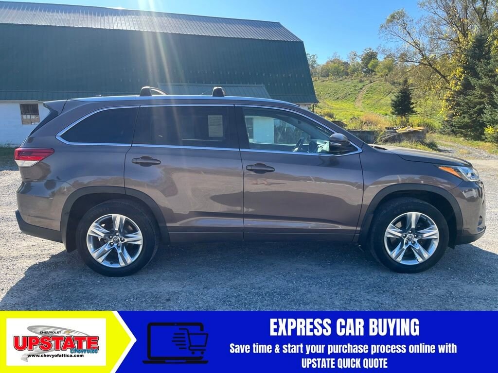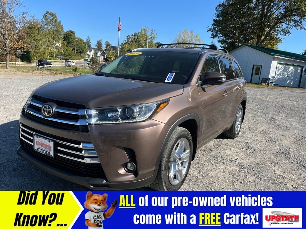 3 EASY WAYS TO BUY FROM UPSTATE CHEVROLET! **CALL US AT (585) 591-2300 **, **VISIT US ONLINE AT WWW.CHEVYOFATTICA.COM**, **TEXT US 24/7/365 @ (585) 765-4030** AWD. 2019 Toyota Highlander Limited Platinum 4D Sport Utility AWD 8-Speed Automatic Electronic with ECT-i 3.5L V6 Tan20/26 City/Highway MPGAwards:* 2019 KBB.com Best Resale Value Awards * 2019 KBB.com 12 Best Family Cars * 2019 KBB.com Brand Image Awards